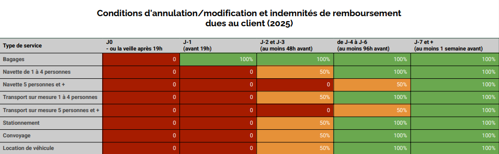 Exemple : une demande de transport effectuée le mercredi à 19h30 pour un transport de bagage le vendredi sera majorée.